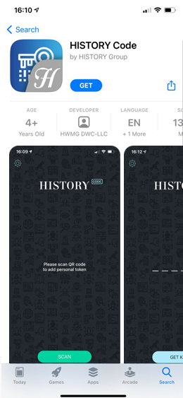 Press GET button and, after it has been installed, open HISTORY Authenticator on your phone